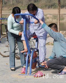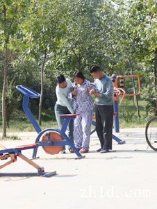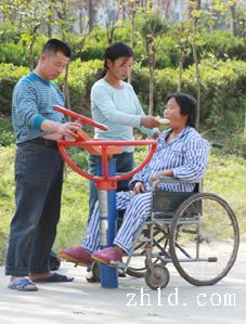 10月22日,我在川匯區(qū)濱河公園無意中拍攝到了一組鏡頭。一對兒女用輪椅推著半身癱瘓的老人,不厭其煩地幫老人使用健身器材,他們不停地蹲下、站起,又蹲下,配合著老人僵硬的動作。