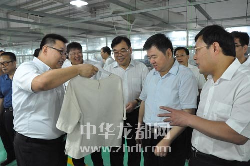 ????集中開工活動(dòng)前,徐光、劉繼標(biāo)等市領(lǐng)導(dǎo)在周口阿爾本制衣有限公司調(diào)研。 記者 王亞輝 攝
