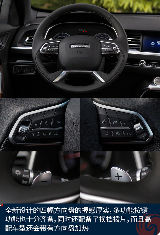 一切以駕駛員為中心的設(shè)計(jì)理念值得肯定,微微朝向駕駛員的中控設(shè)計(jì),全新的電子換擋桿以及多媒體控制旋鈕都給我留下了很深的印象,當(dāng)然了全景天窗進(jìn)一步增加了車內(nèi)空間的開揚(yáng)感,全新設(shè)計(jì)的四幅方向盤的握感厚實(shí),多功能按鍵功能也十分齊備。總之,全新哈弗H6的內(nèi)飾讓我們看到了不一樣的自主設(shè)計(jì),很用心也很有設(shè)計(jì)感,沒有了雜亂無章,相反,這樣的設(shè)計(jì)會(huì)讓人很愿意和汽車獨(dú)處,如果真要挑出一些不足的話,那就是全液晶只有頂配車型才有,如果能夠作為全系標(biāo)配就好了。