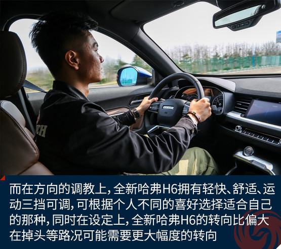 而在方向的調(diào)教上,全新哈弗H6擁有輕快、舒適、運(yùn)動(dòng)三擋可調(diào),可根據(jù)個(gè)人不同的喜好選擇適合自己的那種,同時(shí)在設(shè)定上,全新哈弗H6的轉(zhuǎn)向比偏大,在掉頭或者駛?cè)胍恍┍容^刁鉆的小路時(shí)可能需要更大幅度的轉(zhuǎn)向。