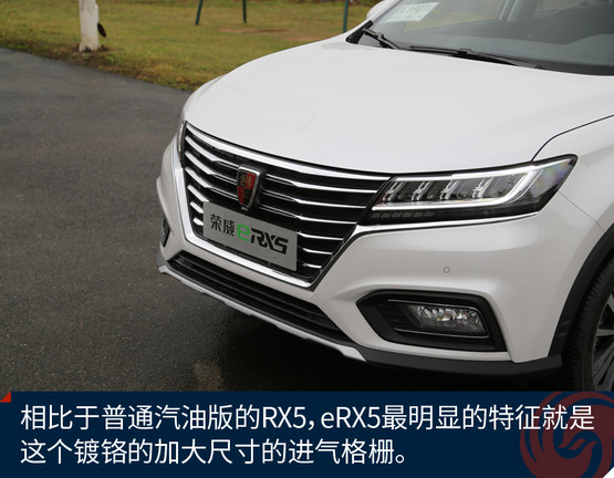 榮威eRX5的外觀設(shè)計來自于上汽榮威家族最新的“律動設(shè)計”語言,整體外觀呈現(xiàn)出的是“鯨頭燕尾”的特點。通過車頭下壓、腰線勾勒、尾部內(nèi)切等設(shè)計,詮釋了“律動”的美學(xué)理念。與汽油版RX5相比,車頭的鍍鉻前格柵尺寸更加大,造型更為舒展,與大燈融為一體。eRX5基于RX5采用的SSA+平臺打造,提供了插電版與純電版兩個版本,這兩款車實際幾乎是同時開發(fā)的,尺寸方面更是一模一樣。插電版的eRX5車身兩側(cè)分別為加油口和充電口,純電動續(xù)航60公里,綜合續(xù)航650公里。車身隨處可見新能源的標(biāo)識,并且還擁有新能源的專屬顏色銀葉金。