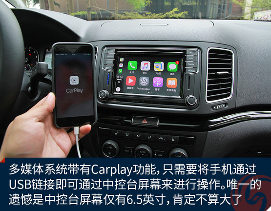 內(nèi)飾方面,夏朗仍然傳承著大眾品牌的經(jīng)典設(shè)計(jì)風(fēng)格,基本不用分辨就知道這是一款大眾汽車。中央的多媒體系統(tǒng)功能豐富,并且?guī)в蠧arplay功能,只需要將手機(jī)通過(guò)USB鏈接即可通過(guò)中控臺(tái)屏幕來(lái)進(jìn)行操作。唯一的遺憾是,夏朗的中控臺(tái)屏幕僅有6.5英寸,在現(xiàn)在看來(lái)肯定不算大了。