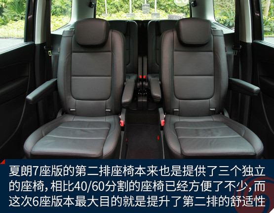 當(dāng)然作為這次新增的車款,我們還是要重點(diǎn)介紹一下夏朗6座版相對(duì)于7座版的區(qū)別。首先要說(shuō)明的是夏朗7座版的第二排座椅本來(lái)也是提供了三個(gè)獨(dú)立的座椅,相比40/60分割的座椅已經(jīng)方便了不少,而這次提供的6座版本最大目的就是提升了第二排乘客的舒適性。