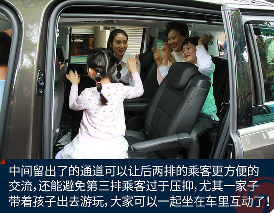 中間留出了的通道可以讓后兩排的乘客更方便的交流,還能避免第三排乘客過(guò)于壓抑,尤其一家子帶著孩子出去游玩,大家可以一起坐在車?yán)锘?dòng)了!