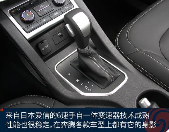 傳動系統(tǒng)匹配的是日本愛信第三代6速手自一體變速器在奔騰各款車型中都有所應(yīng)用,響應(yīng)速度、換擋機制等方面的表現(xiàn)都比較成熟、均衡。