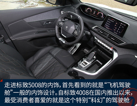 走進(jìn)標(biāo)致5008的內(nèi)飾,首先看到的就是標(biāo)致最新的“飛機(jī)駕駛艙”一般的內(nèi)飾設(shè)計。自標(biāo)致4008在國內(nèi)推出以來,最受消費者喜愛的就是這個特別“科幻”的駕駛艙,相同的設(shè)計也保留在了標(biāo)致5008之上。