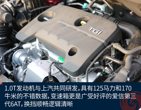 眼前這臺(tái)名爵ZS是1.0T 6AT車(chē)型,1.0T發(fā)動(dòng)機(jī)與上汽共同研發(fā),具有125馬力和170牛米的不錯(cuò)數(shù)據(jù),變速箱更是廣受好評(píng)的愛(ài)信第三代6AT,換擋順暢邏輯清晰。除此之外,低配車(chē)型還有1.5L發(fā)動(dòng)機(jī),與之搭配的是4速自動(dòng)變速器和5速手動(dòng)變速器。
