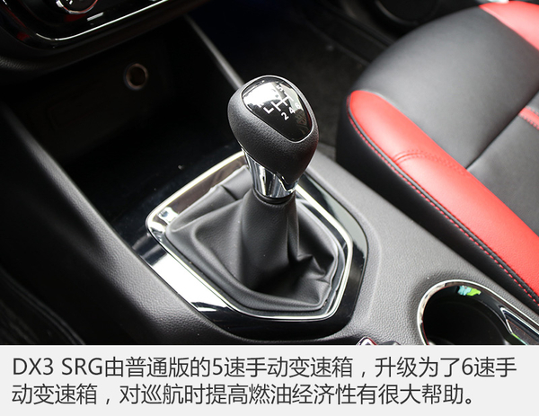 此前DX3分別提供了1.5L+5MT與1.5T+CVT兩種動(dòng)力組合,而在DX3 SRG上則新增加了6速手動(dòng)變速箱供選擇,同時(shí)也是此次試駕的主要車型。