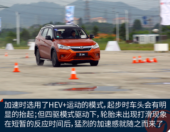 ????????為了充分體驗宋DM的加速能力,我們在試駕場地對其進行了試駕體驗。雖然試駕前一天下過雨,場地還有積水,但是宋DM起步倒是非常平穩(wěn)。并沒有因為電機瞬間大扭矩輸出而導致原地嚴重滑胎的情況發(fā)生。經過分析,出現這種情況的原因可能是宋DM全系標配了ESP車輛穩(wěn)態(tài)控制系統(tǒng),因此在起步時或者濕滑路面上行駛也能保證平穩(wěn);另一個原因是宋DM搭配了全時電四驅,車輛前后軸上各搭載有電機,四輪驅動讓車輛的動力輸出更順暢和均衡。