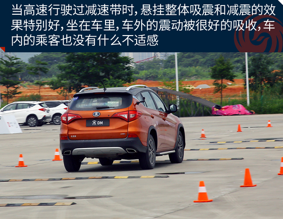 ????????不能否認,新車整車重心偏高,車身自重高達2.1噸,急剎車時車身姿態(tài)保持或許有些夸張;好在有有ESP車身電子穩(wěn)定系統(tǒng)和BOS剎車優(yōu)先系統(tǒng)等電子系統(tǒng)輔助,讓車輛在一個較短的剎車距離平穩(wěn)的停了下來。當然,剎車時巨大的慣性,會讓人不好受,好在宋DM將左腳踏板位置設置成軟性材質,急剎時右腳能夠得到有效的緩沖倒是讓我感到驚喜。