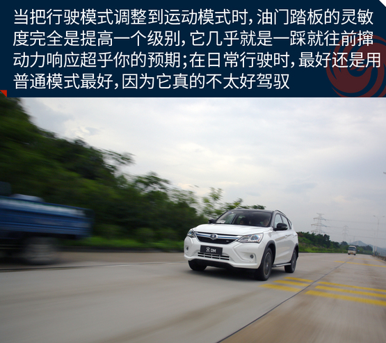 ????????在混合動力模式下,將駕駛模式調整為SPORT模式,由于起步階段是電機發(fā)力,因此并不像汽油車那樣靠吊轉速來獲得最大的扭矩。此時,你只需將油門踩到底,任由宋DM的電機和發(fā)動機發(fā)力就行,而大扭矩帶來的直接體驗就是,身體像是被摁壓在座椅上,任由車輛來讓我體驗G值給身體所帶來的快感,而這種“變態(tài)”的加速感體驗確實是非常的過癮;可當你還在意猶未盡地回味這速度高潮的時候,不知不覺就到了該踩剎車的節(jié)點。