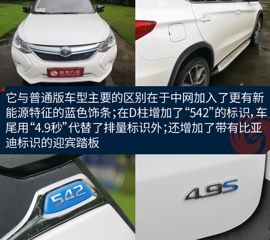 ????????外觀方面,宋DM與燃油版車型基本保持一致,其延續(xù)了X形的前臉造型設計,整個前臉時尚、運動。而在一些細節(jié)上,它與唐100一樣,都有新能源車型專屬的特征,車身D柱處還標有比亞迪“542”標識,并在車尾部標有“4.9s”標識,強調了該車型的動力系統(tǒng)較為強大。車身尺寸方面,宋DM車型的長寬高分別為4565×1870×1700毫米,軸距為2660毫米。