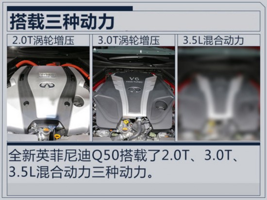 動力方面,全新英菲尼迪Q50搭載了2.0T、3.0T渦輪增壓發(fā)動機(jī)。2.0T渦輪增壓發(fā)動機(jī)最大功率155kW;3.0T渦輪增壓發(fā)動機(jī)最大功率298kW。此外,新車還增搭了一臺3.5L V6混合動力發(fā)動機(jī),屆時油耗將大幅下降。