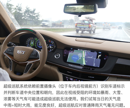 ????????超級巡航系統(tǒng)通過GPS定位的高精度地圖和車載攝像機定位和識別行駛路徑并判斷車輛所在的車道,所以遇到暴雨、大霧或沙塵等影響攝像頭工作的天氣,或者駛?cè)胨淼雷钄郍PS信號的時候,超級巡航系統(tǒng)的使用可能受到影響。雖然這些突發(fā)狀況可能會導(dǎo)致超級巡航功能在行駛中突然推出,但不必擔心安全問題,系統(tǒng)會及時提示駕駛者接管汽車,其邏輯與駕駛者“失能”的提醒流程幾乎相同,駕駛員有從容的時間反應(yīng)并接管汽車。
