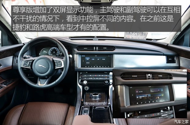 ????18款車型在外觀和內(nèi)飾上并沒有明顯變化,這在之前的圖文實拍中進行了詳細解讀>點擊鏈接查看<。配置上增加了雙屏顯示功能,主駕駛和副駕駛可以在不互相干擾的情況下,看到中控屏不同的內(nèi)容。在之前這是捷豹和路虎高端車型才有的配置,如今已經(jīng)普及到XFL上面。