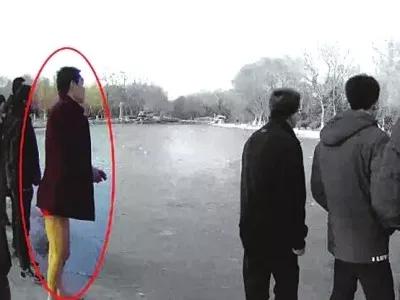 據(jù)康艷講述,當看著孩子被送往醫(yī)院,人們七手八腳幫救人的薛某換衣服時,“紅褲頭”與同伴趁大家不注意,已悄悄地離開了現(xiàn)場。他雖離開了,但有好心人拍下他穿著紅內(nèi)褲趴在冰面上的照片。