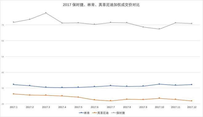 保時(shí)捷、林肯、英菲尼迪銷量在5-10萬之間為第三陣營,保時(shí)捷品牌比較節(jié)制,對銷量一直沒有過多追求,銷售方式與其他豪華品牌不同,多以訂單方式銷售,經(jīng)銷商利潤連續(xù)兩年行業(yè)中為最好;全進(jìn)口車型為主的林肯成交價(jià)在39萬上下,今年銷量增速最快,價(jià)格走勢也非常好,但產(chǎn)品進(jìn)入銷售中期,與其他品牌新款車型對比不占優(yōu)勢;英菲尼迪今年沒有太多走量新車,國產(chǎn)車型也面臨改款,成交價(jià)在30萬上下,隨新款QX50上市,Q50L改款,銷量和成交價(jià)有望走高。