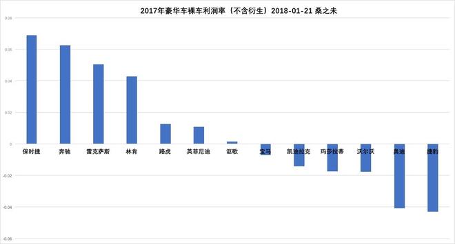 寶馬、奧迪在2018年經(jīng)銷商利潤有望轉(zhuǎn)好,隨寶馬X3國產(chǎn)、奧迪Q5全新?lián)Q代,銷售結(jié)構(gòu)將有所改善。捷豹路虎隨國產(chǎn)化產(chǎn)品數(shù)量進(jìn)一步增加,有助于增加在細(xì)分市場的競爭力;凱迪拉克、沃爾沃是依靠價(jià)格取勝的品牌,2018年如果能提升品牌力,經(jīng)銷商利潤有希望得以改善?,斏?、謳歌由于銷量太小,成交價(jià)格一個(gè)最高,一個(gè)最低,都對其銷量、利潤都有影響。
