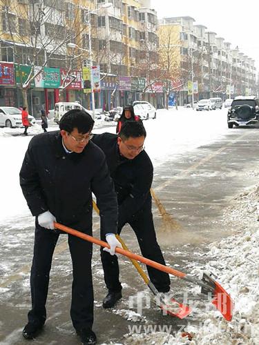 隨后,馬明超還到大同街、新華大街、陳州路查看各單位清掃積雪情況,走訪慰問衛(wèi)生區(qū)清理積雪的干部職工。