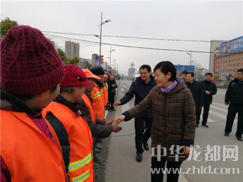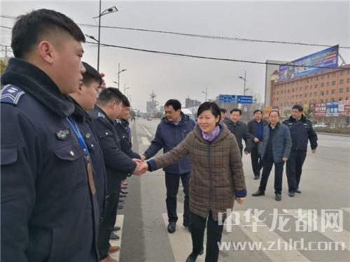 在鄲城縣城新華路與迎賓大道路口,羅文閣、李全林和一線值勤的環(huán)衛(wèi)工人、城管隊(duì)員一一握手,深切關(guān)心環(huán)衛(wèi)工人和城管隊(duì)員的冷暖。“看手多涼,要穿厚點(diǎn)兒呀。大年三十了,你們放棄和家人團(tuán)圓吃餃子的機(jī)會(huì),在為我們的縣城保潔,我們城市的清潔有賴于你們。你們辛苦了,給你們拜個(gè)年,祝你們身體健康?!绷_文閣向環(huán)衛(wèi)工人遞上慰問(wèn)金時(shí),樸實(shí)的話語(yǔ)、殷殷的關(guān)懷把黨的溫暖涌向環(huán)衛(wèi)工人的心窩兒。“不辛苦,領(lǐng)導(dǎo)來(lái)看俺,俺里比吃餃子暖和?!杯h(huán)衛(wèi)工人邊鼓掌邊道出了內(nèi)心的激動(dòng)。