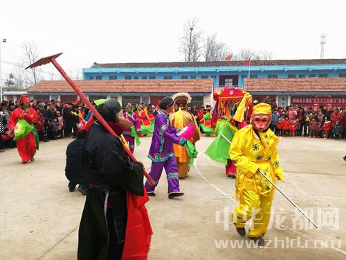 “前幾年農(nóng)閑真是把人閑得心慌,每天都是吃飽等餓、仰著臉上曬日頭?,F(xiàn)在黨的政策好,幫俺提起了精氣神兒,俺村20多個(gè)老頭老太太組成一支竹馬旱船腰鼓花棍廣場(chǎng)舞隊(duì),年輕的時(shí)候會(huì)一點(diǎn),現(xiàn)在見(jiàn)演出就來(lái)學(xué)一點(diǎn),上一次李全林縣長(zhǎng)晚上住俺這里幫扶,在俺這里看演出,說(shuō)俺也成專(zhuān)業(yè)隊(duì)了?!边@個(gè)群眾隊(duì)的隊(duì)長(zhǎng)是78歲的羅有德、扮相是孫悟空,旱船里的“花媳婦”是80歲的郭蘭英。連續(xù)15分鐘的蹦跳表演之后摘掉面具接受記者采訪時(shí),群眾們都不敢相信他們這么大年齡還跳得這么起勁兒?!澳銈兊难莩鲫?duì)名字太長(zhǎng)了”記者說(shuō),“哈哈哈哈,俺老頭老太太都是‘三板斧’,也不會(huì)起名字,會(huì)的這幾招兒都寫(xiě)到名字上了?!绷_有德、郭蘭英大笑著回答。