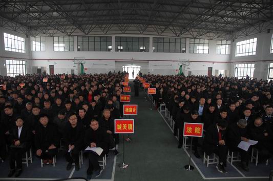 中華龍都網(wǎng)訊(周口報(bào)業(yè)全媒體記者 馬治衛(wèi) 通訊員 劉芳亮 張長(zhǎng)明)3月3日,太康縣召開(kāi)掃黑除惡專(zhuān)項(xiàng)斗爭(zhēng)推進(jìn)大會(huì)。王國(guó)璽、李錫勇、王程清、張思民、何明照、謝成營(yíng)等縣四大班子領(lǐng)導(dǎo)出席會(huì)議。各鄉(xiāng)鎮(zhèn)黨委書(shū)記、分管副書(shū)記、綜治辦專(zhuān)職副主任,派出所所長(zhǎng)、司法所所長(zhǎng)、法庭庭長(zhǎng)、行政村支部書(shū)記,縣直單位主要負(fù)責(zé)同志、各部委辦常務(wù)副職,政法委、信訪局、法檢公司全體人員參加會(huì)議。