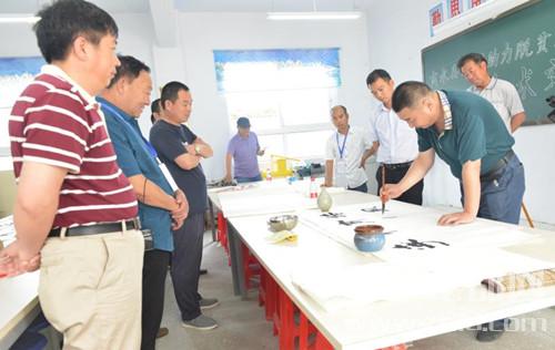 李世棟、姚海城都是當(dāng)?shù)氐臅?shū)法愛(ài)好者,經(jīng)常寫(xiě)寫(xiě)畫(huà)畫(huà),時(shí)常在電視或電腦上看一些書(shū)法名家的講座,但是還都沒(méi)有過(guò)與書(shū)法名家面對(duì)面交流的經(jīng)歷。所以,他們一聽(tīng)說(shuō)有書(shū)法家進(jìn)校園的活動(dòng),都急匆匆地從收麥現(xiàn)場(chǎng)向王坡寨學(xué)校趕去。
