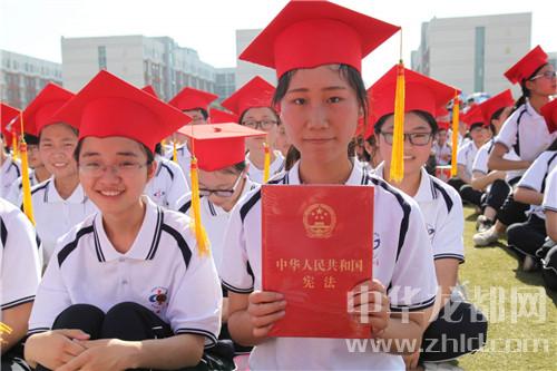 與會領(lǐng)導分別為成人學生代表佩戴了成人帽和成人紀念章,教師和家長代表也走進學生中間,為學生佩戴了成人帽和成人紀念章。