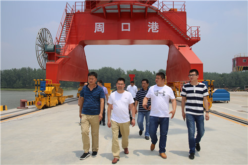 當(dāng)天上午,宿遷市港口發(fā)展有限公司董事長(zhǎng)尤勇、江蘇連云港灌河港國(guó)際港務(wù)有限公司副總經(jīng)理鄒平海攜公司人員來(lái)到周口中心港碼頭,尤勇、鄒平海一行首先參觀中心港碼頭4#5#港池,周口中心港碼頭運(yùn)營(yíng)辦主任段傳奇向他們?cè)敿?xì)介紹了碼頭運(yùn)營(yíng)現(xiàn)狀、吊裝設(shè)備使用情況、圍繞周口中心港打造的多式聯(lián)運(yùn)建設(shè)進(jìn)度和長(zhǎng)遠(yuǎn)規(guī)劃。