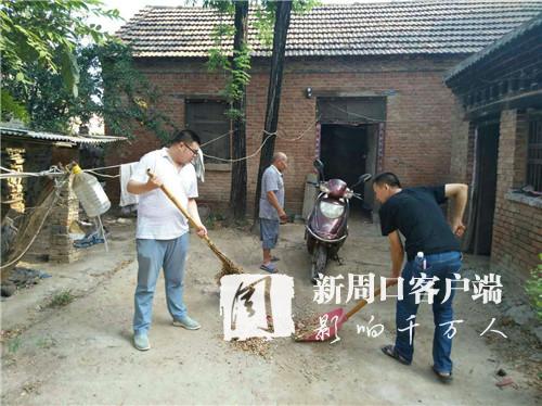 如果環(huán)境衛(wèi)生保持不好,村民的院落就成了滋生蚊蟲(chóng)的“溫床”。24日早上,大家再一次來(lái)到張龐村,宣傳扶貧攻堅(jiān)、“六村共建”等政策,動(dòng)手幫群眾打掃院落衛(wèi)生,趁天好幫村民曬糧食。副部長(zhǎng)宋斌在走訪時(shí)聽(tīng)說(shuō)貧困戶(hù)劉金才近日肺病復(fù)發(fā),呼吸困難,“心里上不來(lái)氣兒”,趕緊撥打“120”,聯(lián)系鎮(zhèn)衛(wèi)生院醫(yī)生接診,并和駐村第一書(shū)記霍輝、駐村隊(duì)員李富軍、幫扶隊(duì)員張志華、郭威自掏腰包,湊了500塊錢(qián)交到劉金才老伴手里,解了燃眉之急。
