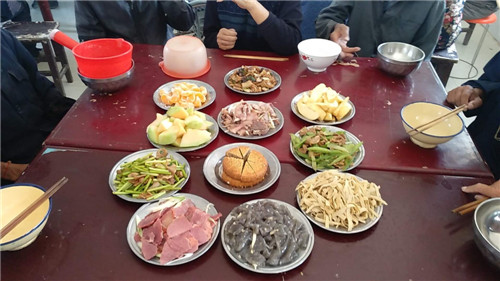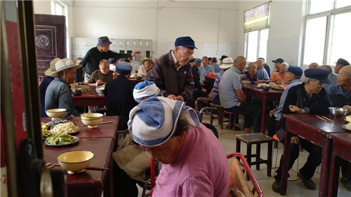文藝節(jié)目之后,大家一同在敬老院食堂吃團圓飯。老人們邊吃邊聊,臉上洋溢著開心幸福的笑容。