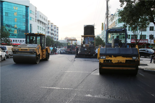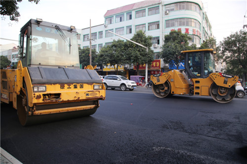“為確保工程安全施工,我們抽調(diào)警力跟著工段加強執(zhí)勤,保證工程進度及過往車輛及行人有序通行……”記者當天在現(xiàn)場看到,該路段路面第二遍細石子正在鋪設,熱氣騰騰的瀝青石子拌料被大型機械平整后,三臺軋路機緊跟著軋平;為不影響工程進度,每個路口都有交警在指揮著過往車輛有序繞行。