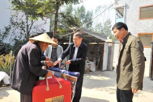 為進(jìn)一步弘揚(yáng)中華民族敬老、愛(ài)老、助老的優(yōu)良傳統(tǒng)美德,讓結(jié)隊(duì)幫扶村——太康縣王集鄉(xiāng)李小橋行政村90歲及以上老人過(guò)一個(gè)溫馨又和諧的重陽(yáng)佳節(jié),10月12日,周口市稅務(wù)局黨委委員、副局長(zhǎng)徐平烽,黨委委員、總會(huì)計(jì)師李霞,黨委委員、總經(jīng)濟(jì)師張振祥等在對(duì)全村9名高齡老人進(jìn)行了走訪(fǎng)慰問(wèn),為老人們送上節(jié)日的祝福和價(jià)值近2000元的慰問(wèn)品。