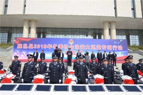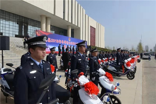 儀式上,縣領(lǐng)導(dǎo)為“百警駐百村”民警代表發(fā)放了第三批巡邏電動(dòng)車、臺(tái)式電腦、平板電腦等 “一村一警”警務(wù)裝備。儀式結(jié)束后,隨著梁建松一聲令下,公安民警統(tǒng)一登車,駛向大街小巷,開(kāi)展第集中大巡邏。