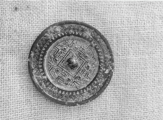 據(jù)悉,這批墓葬因埋藏較淺,均遭到嚴重破壞,出土文物大部分為器物陶片。從殘片上看主要有陶盆、耳杯、陶案、陶樽、陶罐、陶甕、銅錢、銅鏡等,其中八乳規(guī)矩鏡是這次出土的珍貴文物。