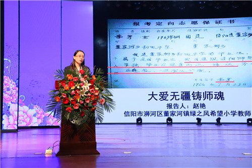 報告會上,李芳的同事綠之風(fēng)希望小學(xué)教師趙艷、李芳的老師信陽職業(yè)技術(shù)學(xué)院語言傳媒學(xué)院教師熊可書、李芳的女兒代雨辰和信陽市浉河區(qū)委宣傳部新聞中心記者劉亞迪分別以《大愛無疆鑄師魂》,《那是青春吐芳華》,《有媽媽的地方處處是溫暖》,《大別山上映山紅》為題,深情講述李芳同志一心想著學(xué)生,全身心投入教育工作,扎根鄉(xiāng)村獻(xiàn)身教育事業(yè)的點點滴滴,詮釋了李芳同志不忘初心、潛心育人、敬業(yè)奉獻(xiàn)、舍生忘我的高尚品德和優(yōu)秀品質(zhì),為與會者帶來了一場感人肺腑的報告會。
