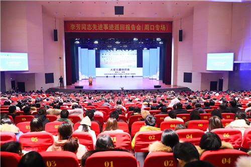 12月12日上午,李芳同志先進(jìn)事跡巡回報告會(周口專場)在周口師范學(xué)院舉行,來自全市教育系統(tǒng)的1000余名干部、教師聆聽了李芳的先進(jìn)事跡和生活點滴,感受李芳高尚的師德光輝,接受心靈的洗禮。