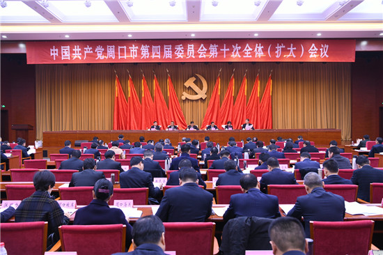 12月12日上午,中國共產(chǎn)黨周口市第四屆委員會第十次全體(擴(kuò)大)會議在周召開。 記者 王映 攝