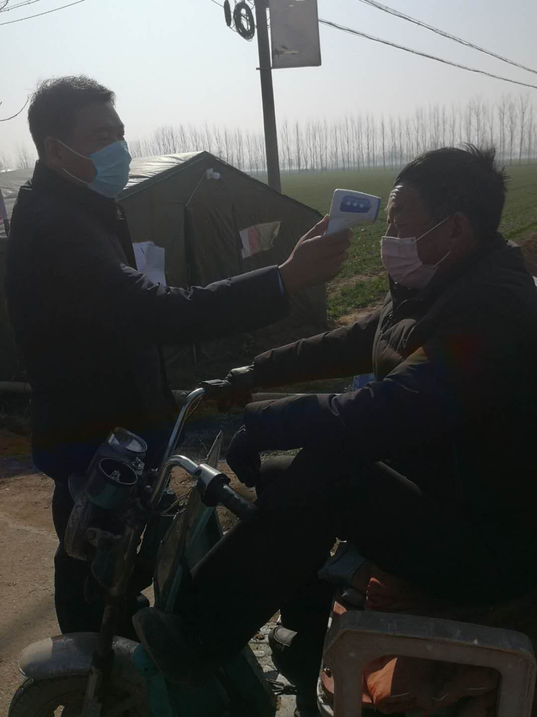 由于物資未曾到位,檢測點僅簡單搭了一頂四面透風(fēng)的帳篷,紀占東跟其他工作人員一起在寒風(fēng)中檢查登記出入人員、測量體溫,天氣寒冷,吃飯也只能用饅頭、泡面對付,但是內(nèi)心是火熱的。紀占東說在防控工作中,絕大部分群眾理解和支持的,有群眾在家里燒好開水給值班人員送,還有的群眾送來暖手寶、熱氣騰騰的飯菜......這些都是他工作的動力和源泉。