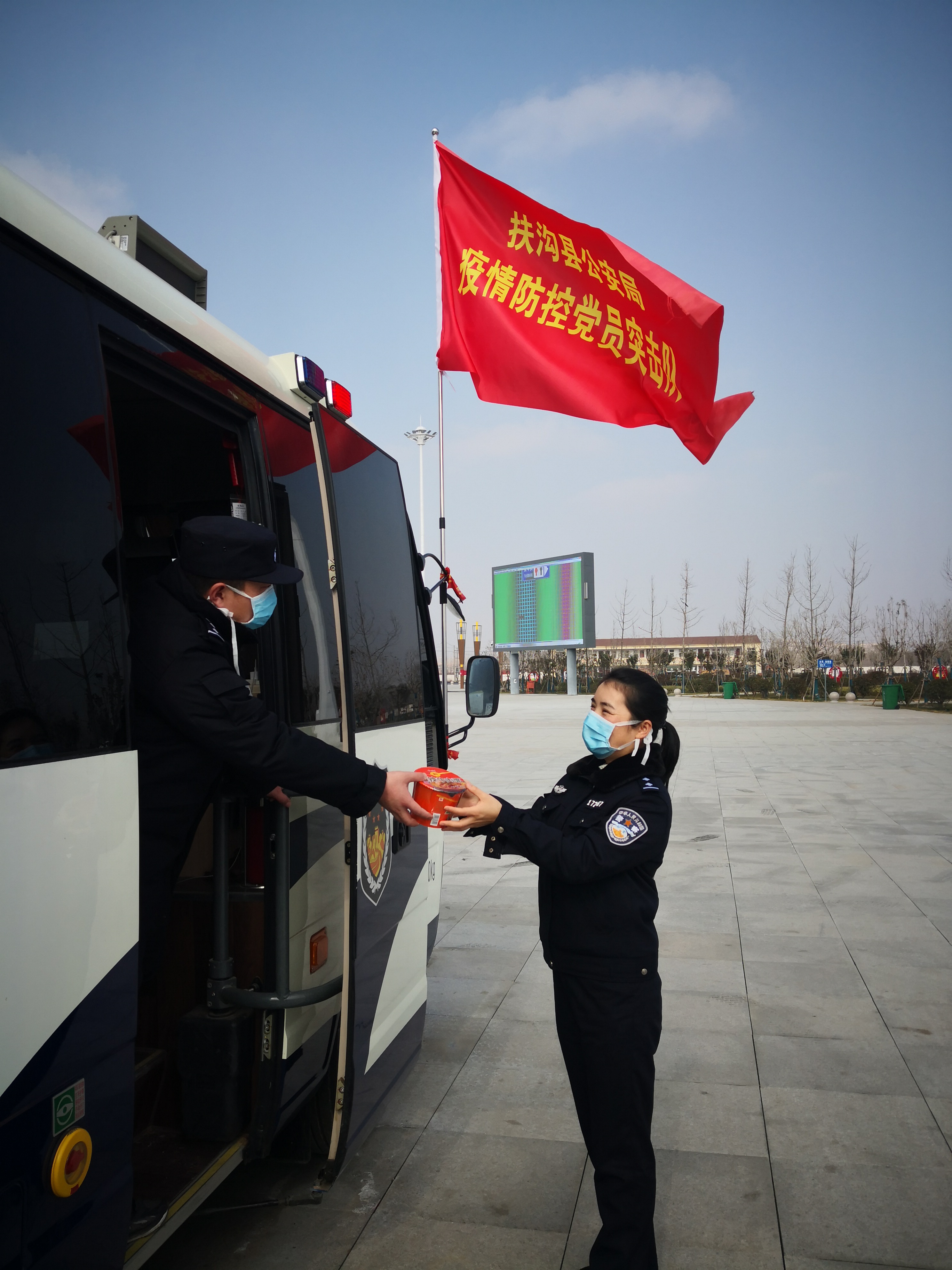 2020年的春節(jié)非比尋常,新冠病毒疫情在中華大地肆虐橫行,扶溝縣公安局黨委審時(shí)度勢(shì),號(hào)召全體民警全員上崗,眾志成城,抗擊疫情。王博和閆曉鳳在疫情防控的關(guān)鍵時(shí)期,他們并肩作戰(zhàn)、相互鼓勵(lì),舍小家顧大家,和戰(zhàn)友們一同投入到防控疫情的第一線。