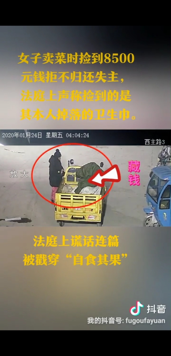 庭審中,面對監(jiān)控錄像顯示楊某彎腰撿拾錢款的畫面,楊某本人百般抵賴、謊話連篇,拒不承認(rèn)撿到錢款。當(dāng)法官詢問楊某如何解釋監(jiān)控畫面中顯示其撿到了白色包裹時,楊某居然說是彎腰撿東西了,但撿的不是錢,撿的是她自己的衛(wèi)生巾。法官再次向楊某告知當(dāng)事人作虛假陳述的后果及應(yīng)當(dāng)承擔(dān)的法律責(zé)任,楊某仍一口咬定撿到的不是錢,撿的是衛(wèi)生巾。法官遂傳喚現(xiàn)場目擊證人出庭作證,兩名證人依法進(jìn)行了法庭宣誓,明確表示見到了楊某撿起地上一包錢并放入其本人包中的行為。此時,原告又提交了一份錄音證據(jù),法官予以當(dāng)庭播放。錄音清晰顯示,楊某在電話中曾經(jīng)承認(rèn)1月24日早上撿到錢款的行為。