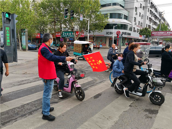 活動中,機關、社區(qū)十余名志愿者穿著紅馬甲,手持小紅旗到交通路與五一路、六一路交叉口開展文明交通勸導。志愿者們對部分市民闖紅燈、亂穿馬路、騎電動車打電話等不安全的交通行為進行勸阻,耐心引導行人和非機動車輛遵守交通規(guī)則,并協(xié)助交警維持十字路口交通秩序。