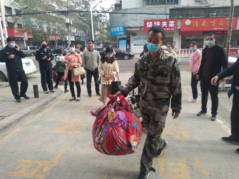 行動(dòng)中,基干民兵按照應(yīng)急預(yù)案要求,全部提前到崗到位,在學(xué)校大門前及周邊路口巡邏執(zhí)勤,指揮疏導(dǎo)車輛有序通行,避免交通堵塞,造成人員聚焦;積極協(xié)助學(xué)校進(jìn)行體溫檢測、物品消毒、人員登記等工作;引導(dǎo)學(xué)校門口家長、學(xué)生不聚集、不扎堆,保障師生安全有序入校。為避免人群過度密集,學(xué)生家長一律禁止進(jìn)入校園,而學(xué)生開學(xué)時(shí)攜帶的行李物品較多,基干民兵們主動(dòng)當(dāng)起了“搬運(yùn)工”,幫助學(xué)生們扛運(yùn)大包小包的書籍、被褥和行李,熱情的服務(wù)受到很多學(xué)生的點(diǎn)贊。