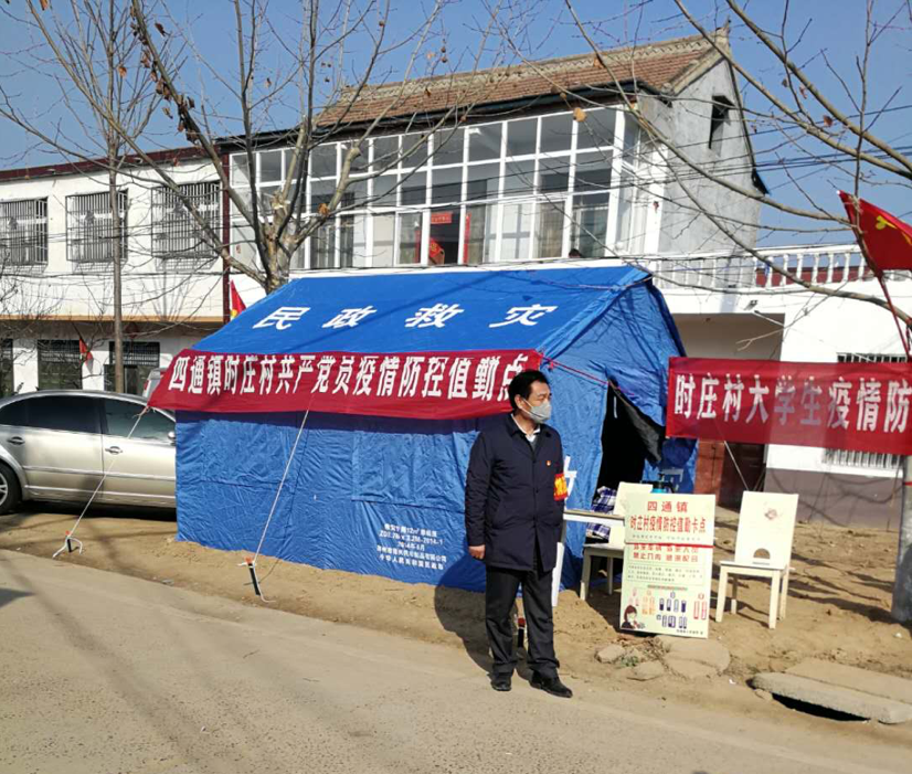做好戰(zhàn)斗員。時(shí)莊村位于兩縣三鄉(xiāng)交界處,001鄉(xiāng)道貫穿時(shí)莊村5個(gè)自然村,人員涉及面廣,管控難度大。為了確保時(shí)莊卡點(diǎn)管控到位,時(shí)興榮辦公、吃住在卡點(diǎn)。俗話說(shuō)“牙疼不是病,疼起來(lái)真要命。”春節(jié)前他壞了一顆牙,本想著過(guò)了春節(jié)去拔掉,可隨著疫情的發(fā)生,他立即上陣抗擊,忍受著牙疼的折磨,日夜堅(jiān)守三十多天,導(dǎo)致周?chē)鷥深w牙齒也壞了,但他沒(méi)有告訴任何人,也沒(méi)有離開(kāi)卡點(diǎn)。在卡點(diǎn),時(shí)興榮是固定的,他每天帶領(lǐng)兩名年輕黨員干部執(zhí)勤檢查,有時(shí)一個(gè)饅頭一包咸菜就是早餐,一杯熱水一桶方便面就是午飯,他不怕苦也不怕累,就怕群眾的健康安全受到威脅。