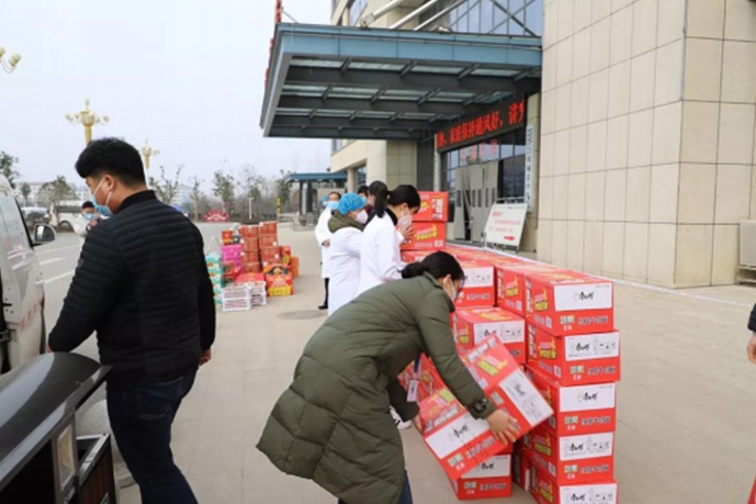 2月10日,佟桂枝了解到24小時堅守在鄲城縣迎賓大道、各社區(qū)防控卡點(diǎn)的交警、疾控人員、社區(qū)干部們不僅冒著被感染的風(fēng)險守護(hù)著人民群眾的健康安全,而且物資緊缺,生活艱辛,她的心又一次被深深地觸動。佟桂枝立即召集部分員工主動申請參與愛心志愿活動,向迎賓大道值勤卡點(diǎn)、新城辦事處丁老家社區(qū)等處送去大量愛心物資,為解決卡點(diǎn)執(zhí)勤人員的一日三餐問題盡綿薄之力。