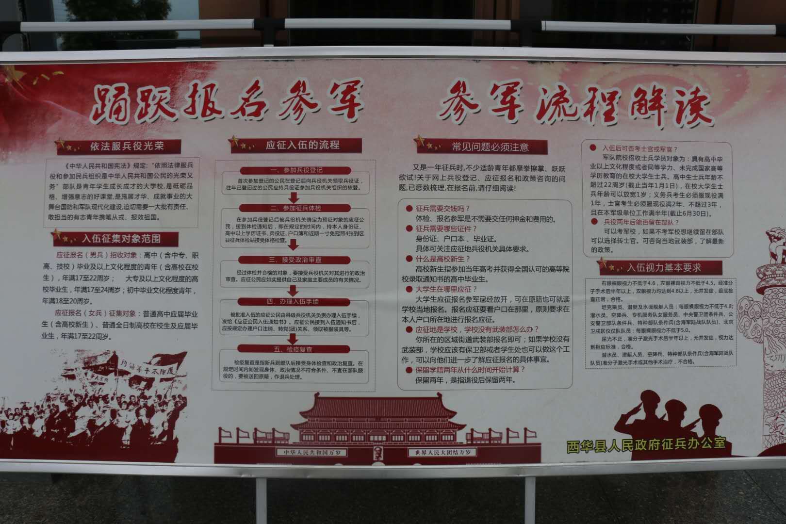 為做好大學(xué)生征兵工作,西華縣人武部認(rèn)真開(kāi)展了多層次、全方位的宣傳發(fā)動(dòng)。縣人武部多次召開(kāi)黨委會(huì),分析大學(xué)生征兵形勢(shì),研究制定層層宣傳發(fā)動(dòng)方案。扎實(shí)開(kāi)展大學(xué)生兵員潛力調(diào)查工作,挖掘大學(xué)生兵員潛力,及時(shí)登記造冊(cè)。全縣成立了60支由縣人武部干部職工、鄉(xiāng)鎮(zhèn)專(zhuān)武干部、村民兵干部參加的大學(xué)生征兵宣傳小分隊(duì),分頭對(duì)轄區(qū)內(nèi)在家的各級(jí)各類(lèi)院校畢業(yè)生和在校生,進(jìn)行挨家挨戶、面對(duì)面的宣傳,把《2020年西華縣大學(xué)生征兵宣傳冊(cè)》發(fā)放到每一名大學(xué)生手中,做到一人不漏。為其算好“經(jīng)濟(jì)帳”、“ 政治帳”、“ 前途帳”。把針對(duì)大學(xué)生青年制定的最新調(diào)整的優(yōu)惠政策宣傳到位,最大限度發(fā)掘大學(xué)生征集潛力。同時(shí),該縣把做深做細(xì)大學(xué)生征兵宣傳報(bào)名工作,作為完成征兵任務(wù)的重要基礎(chǔ),積極轉(zhuǎn)變思路,創(chuàng)新工作方法,靈活運(yùn)用各種宣傳手段,千方百計(jì)增強(qiáng)宣傳發(fā)動(dòng)的針對(duì)性、實(shí)效性。該部除采取散發(fā)傳單、懸掛橫幅、制作板報(bào)、張貼標(biāo)語(yǔ)、現(xiàn)場(chǎng)咨詢等傳統(tǒng)方式外,還充分利用廣播、電視、微信、短信、電子屏等傳媒手段增強(qiáng)宣傳效果,做到廣播電視里有音有像,微信短信電子屏有征兵信息滾動(dòng)發(fā)布,墻報(bào)上有文,橫幅標(biāo)語(yǔ)上有宣傳口號(hào),提高全民政治意識(shí)和國(guó)防觀念,切實(shí)讓大學(xué)生入伍優(yōu)惠政策宣傳不留死角。該部充分利用對(duì)現(xiàn)役軍人家庭逐戶走訪解難、贈(zèng)送懸掛“光榮軍屬”牌匾、敲鑼打鼓送喜報(bào)等活動(dòng),在全社會(huì)大力營(yíng)造“一人參軍、全家光榮”的鮮明導(dǎo)向,讓尊崇軍人的號(hào)召在西華縣落地,讓當(dāng)兵光榮的傳統(tǒng)在群眾心中扎根,從而激勵(lì)大學(xué)生青年積極報(bào)名參軍的報(bào)國(guó)熱情。