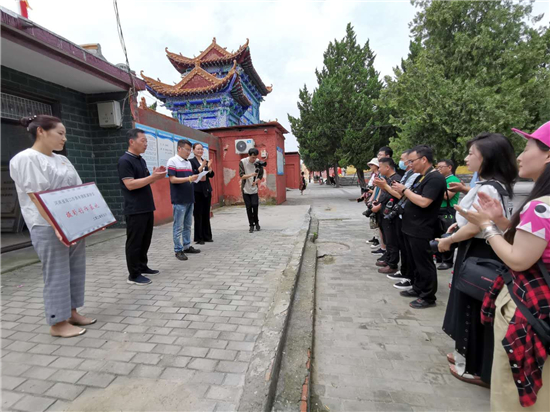 經(jīng)過(guò)實(shí)地探訪考察后,6月19日上午,周口市青年攝影家協(xié)會(huì)向西華縣女?huà)z城景區(qū)授予“攝影創(chuàng)作基地”牌匾。今后,周口市青年攝影家協(xié)會(huì)將發(fā)揮自身優(yōu)勢(shì),利用攝影藝術(shù)擴(kuò)大提升女?huà)z城的知名度和影響力。