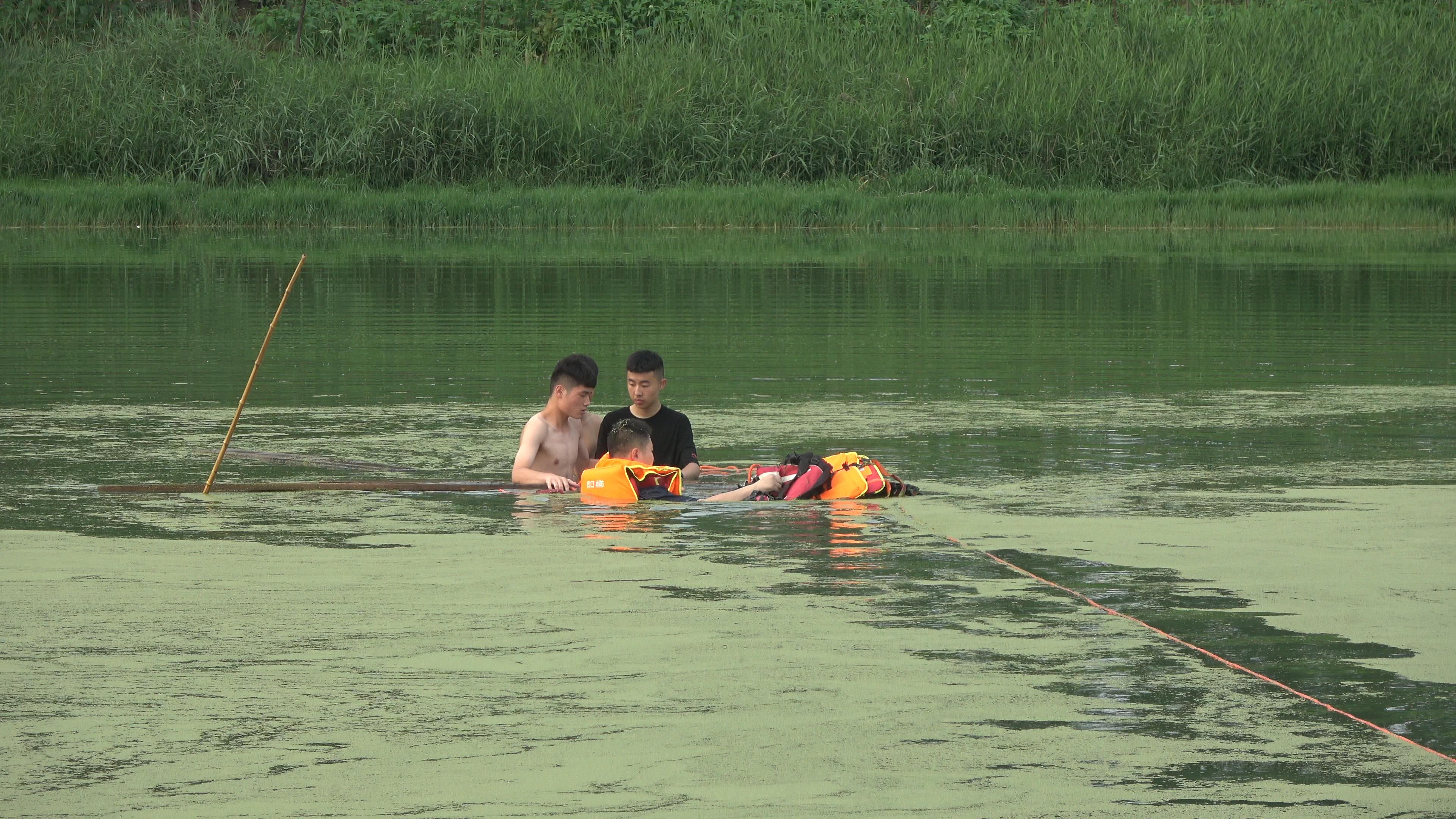 接到群眾報警后,太康縣消防救援大隊立即出動3部消防車、15名指戰(zhàn)員趕赴現(xiàn)場。救援人員發(fā)現(xiàn),由于近日多雨,河水有3米多深,三名少年站在已經(jīng)沉沒的船上搖搖晃晃,水已經(jīng)淹沒到胸部,情況十分危急?,F(xiàn)場指揮員立即決定挑選2名水性較好的消防員攜帶救生衣、水域救援漂浮繩等相關(guān)器材,實施渡河營救??吹骄仍藛T一點點靠近,三名少年情緒穩(wěn)定了不少,隨后配合消防員將救生衣穿好,在消防員的指引下,三名少年拉著救援繩在岸上消防員的幫助下成功靠岸脫險。