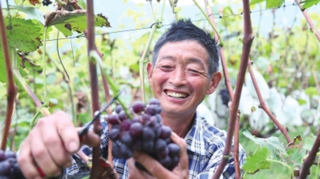 ? 9月14日,汝陽(yáng)縣十八盤(pán)鄉(xiāng)斜紋村冰墨葡萄種植專業(yè)合作社社員在葡萄園里采摘葡萄。斜紋村黨支部積極引導(dǎo)村民種植冰墨葡萄130畝。