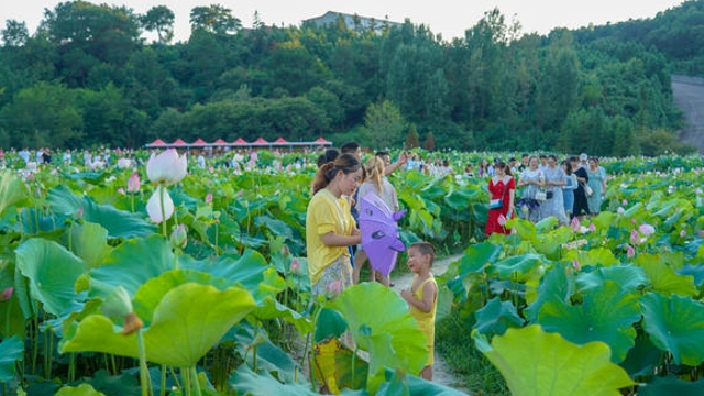 金秋九月,豐收在望。新縣泗店鄉(xiāng)陸灣村籽蓮產(chǎn)業(yè)基地荷紅柳綠、蓮蓬滿池,村黨支部書(shū)記方賢文正領(lǐng)著村民在荷花池內(nèi)忙著采摘成熟的蓮蓬,歡聲笑語(yǔ)滿溢荷塘。